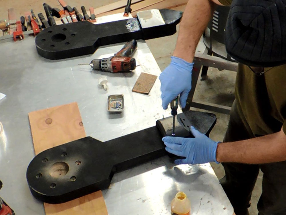 I roughed the surface of the Birch Ankles where the Beefies would attach, then smeared on some Gorilla Glue and wet the Birch with a little water. The ABS Beefies were positioned and screwed to the Birch with #6 wood screws.