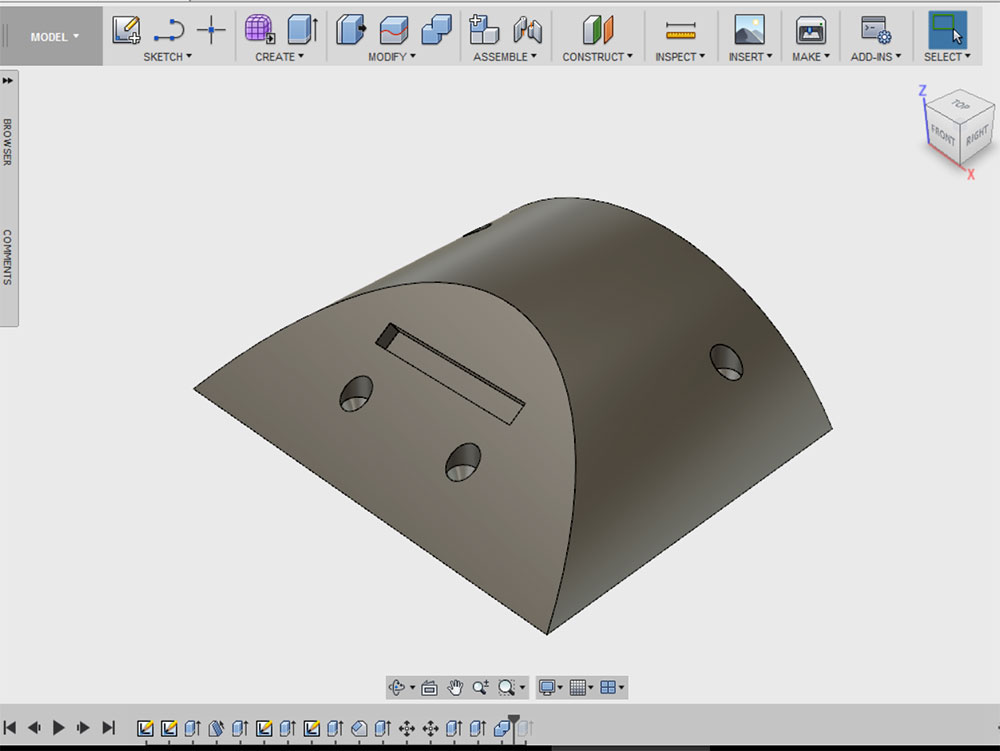 I had the rough form of the R6-T3x body on my bench, with a Skirt attached and a place-holder dome sitting on top… time to re-visit the legs. So, going back to where I left off, I had the legs assembled and drilled for attachment to the body. I next wanted to get the Ankles Beefy. I began by modeling the Beefies in Fusion. I had decided that they would be attached to the Legs with Glue and Screws so I added counter-sunk screw holes to the model. These were then printed in ABS with a .20mm Layer Height and medium infill.