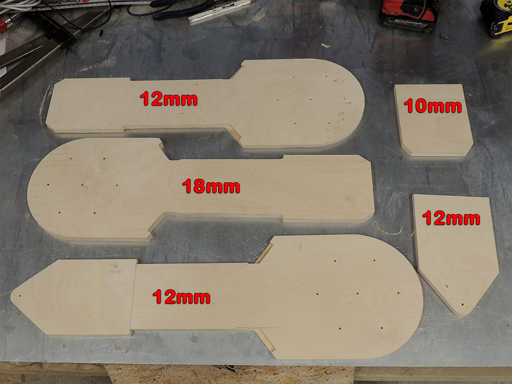 In my past post I talked about making a Template for my wooden legs. The idea was that I’d rough cut the patterns, and then use the template to finish the pieces on my router table. Well, as Adam Savage says, “No plan survives first contact with implementation”. I’ll get back to this later. I am using Baltic Birch Plywood for these legs, in 12mm and 18mm thickness. Note: Yes, I may speak in the sensible measurement scale (metric) sometimes… I’ll go back and forth between fractional inches and metric on a whim. This is a byproduct of growing up during the metrification of Canada in the early 70s. If you’re lucky (or not) you may even catch me measuring by Smoot… but I digress…