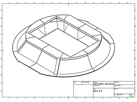 The skirt is another plan gone awry. I had decided that I was going to model, mold and cast in composites a Skirt. I considered a Wood Model, and I considered Foam, and I considered modeling clay over a Wood Armature. In the end I decided to model the Skirt in CAD and print it out in pieces out of ABS, weld the pieces and prepare for molding. So far So good... right?
