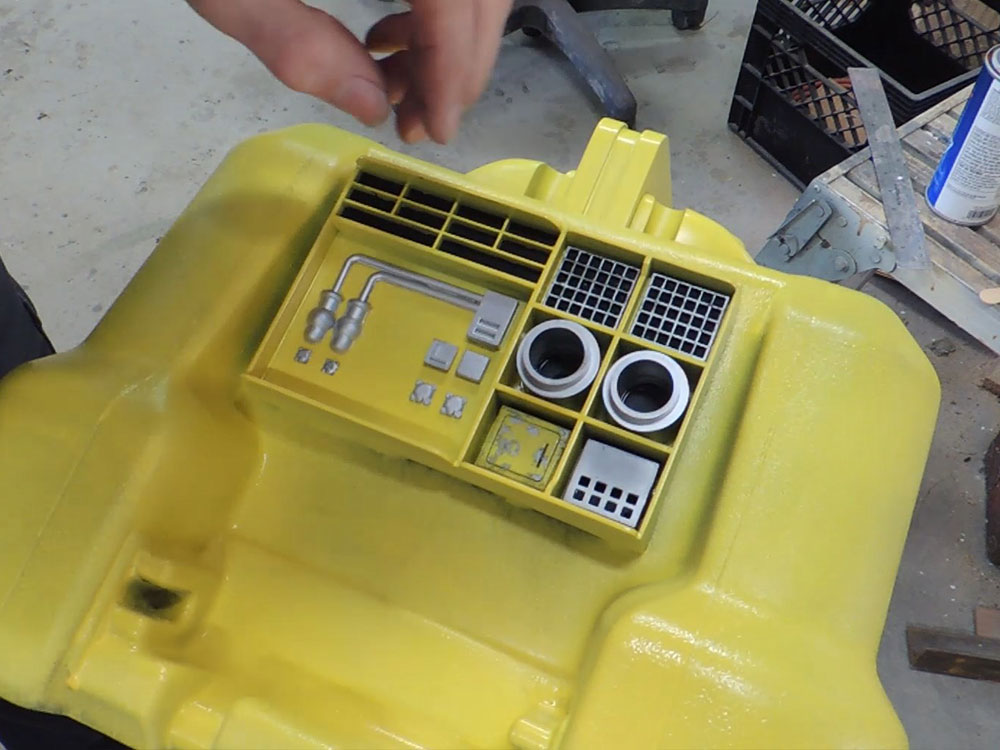 Moving right along I'm now adding more Body Details and doing the first passes with paint and weathering. I add the sheet metal corners and prep for the side hoses.